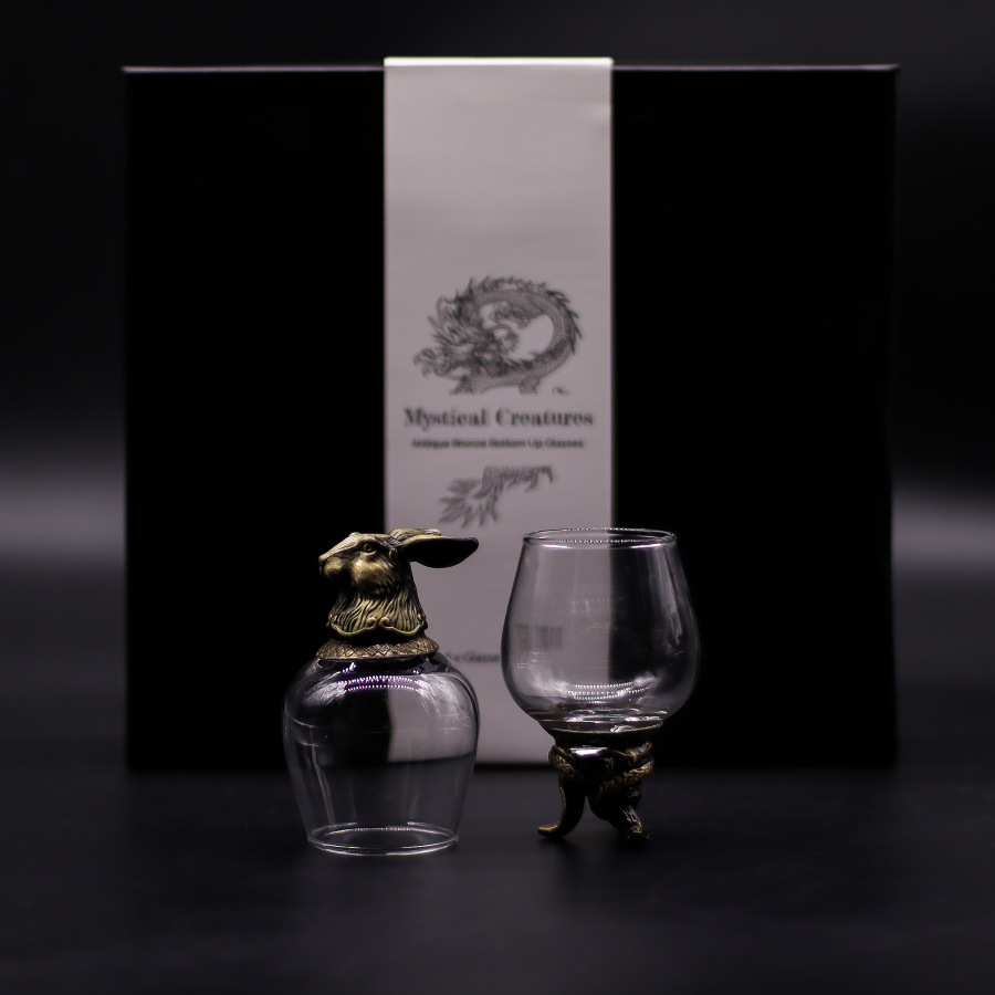 Každý pohárik má masívnu mosadznú základňu vytesanú do podoby mytologických bytostí, ako sú drak, kobra, tiger, slon, koza a baran – nádherne detailné a plné charakteru. Po obrátení sa figúrka ukáže v celej svojej kráse, čím sa každý kus stáva malým umeleckým dielom.