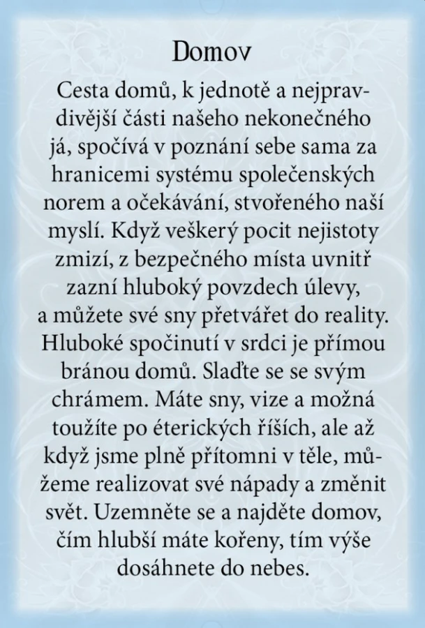 Vydaj sa za hranice vedomia, prebuď svoju vnútornú múdrosť, napoj sa na vyššie dimenzie. Prijmi pozvanie do liečivého sveta Lemurie. Obrazy a symboly prinášajú pradávne spomienky, umožnia spojenie so svetlom a prinášajú rozšírené vedomie pre dobro celej našej planéty. Každá karta je portálom - do tvojho podvedomia, galaktického pôvodu aj hlbokého liečenie. Preskúmaj témy ako aktivácia svetelného tela, elementárnej energie, čakry a multidimenzionálnej existencie. Nechaj sa viesť svojou dušou a vráť sa späť domov.