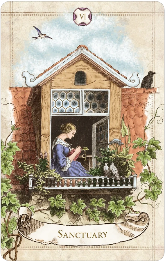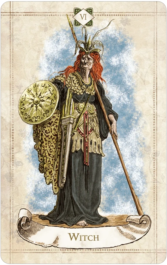 52-kartový balíček vešteckých kariet s vintage umením, 104-stranový sprievodca, bonusová rozkladacia tabuľka, archetypy pre veštenie a psychologický vhľad.