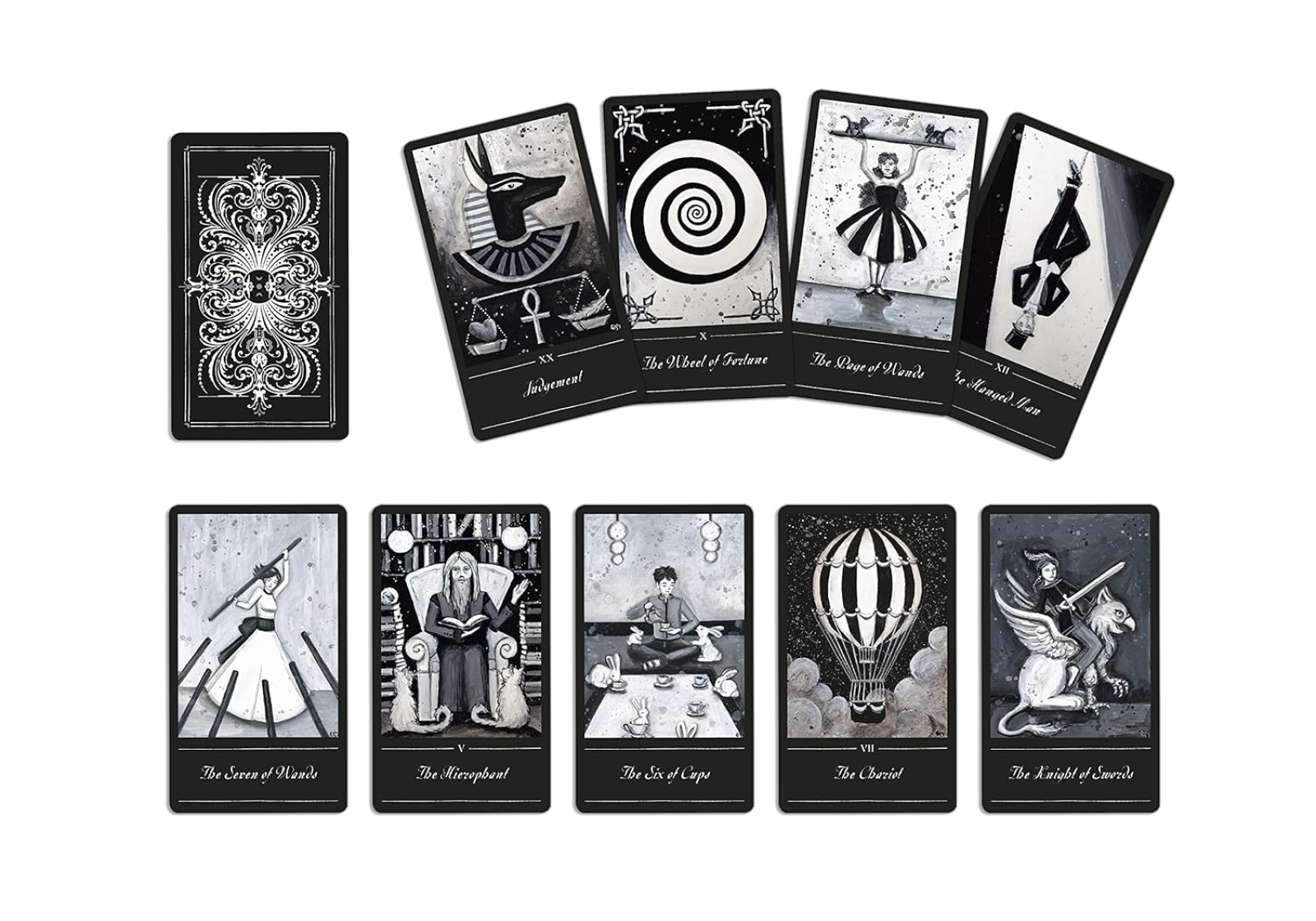 Táto maľovaná séria zachytáva témy každej zo 78 kariet v tradičnom tarotovom balíčku Rider-Waite-Smith s rovnakým dielom rozmarnosti a tajomstva. Archetypálne postavy ako Blázon, Hierofant a Milenci sa vynárajú z tmavej oblohy a víriacich oblakov. Havrany nemusia byť tým, čím sa zdajú byť. Mačky vedia viac, ako kedy povedia. Priložená príručka ponúka interpretácie kariet a navrhované rozloženia pre výklad tarotových kariet pre začiatočníkov aj skúsených čitateľov.