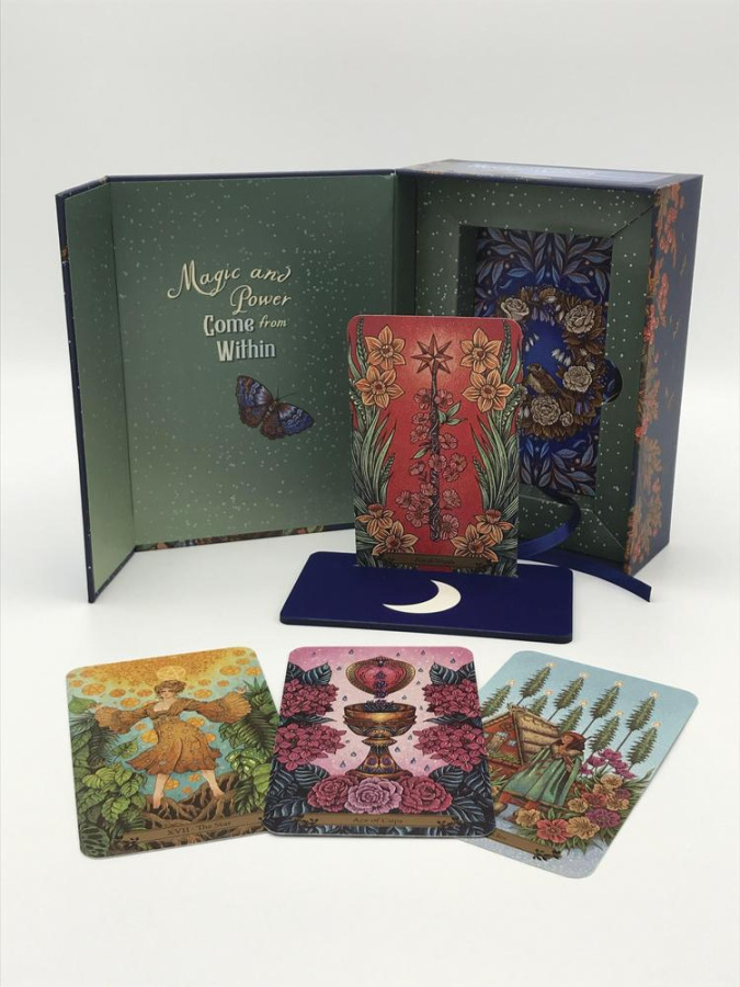 Tento 78-kartový balíček, ktorý predstavuje vynikajúce umenie od Angely Rizzy, zachováva tradíciu Rider-Waite-Smith a zároveň ctí spojenie ježkárky s neviditeľným svetom. Vo svojej poučnej sprievodnej knihe vás Tudorbeth sprevádza na vašej ceste veštením a odhaľuje trojdielny význam každej karty: hranicu (príbeh a umiestnenie karty), jazdu (činnosti potrebné na to, aby sa karta stala skutočnosťou) a závoj (praktické cvičenie, ako napríklad kúzlo, tára, modlitba alebo meditácia, ktoré vám pomôže vidieť vašu cestu).