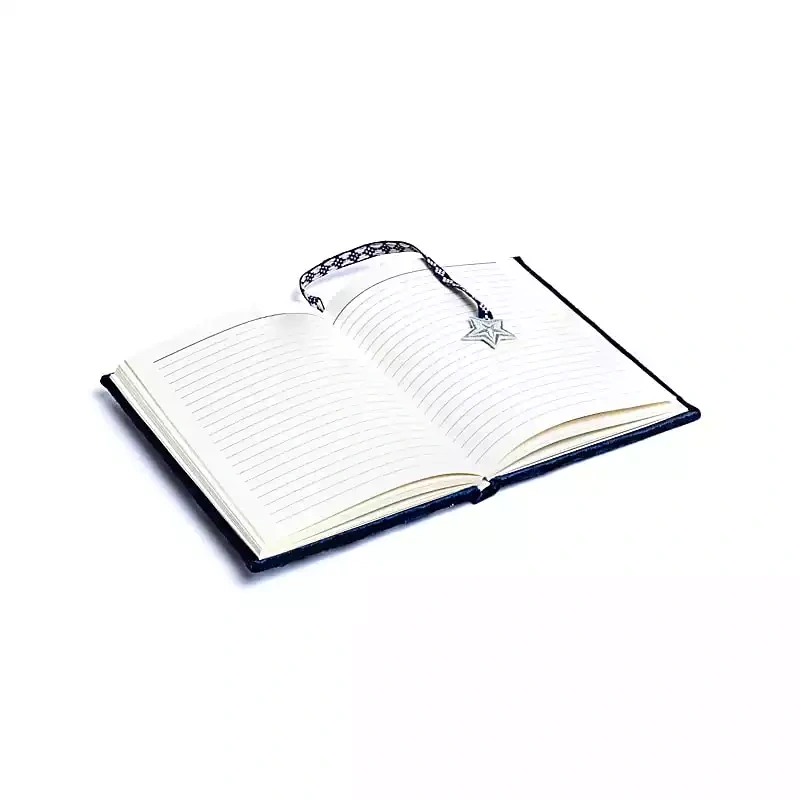 Hebký zamat, nočná obloha, praktický formát. Tmavomodrý zamatový zápisník zdobí precízna výšivka Mesiaca a hviezd s jemnými korálikmi. Vnútri nájdete 160 linajkových strán na denník, plánovanie či tvorivé nápady a textilnú záložku, vďaka ktorej sa vždy rýchlo vrátite k rozpísaným myšlienkam. Rozmer 20 × 15 cm sa pohodlne zmestí do kabelky či batohu – ideálny spoločník na každý deň.